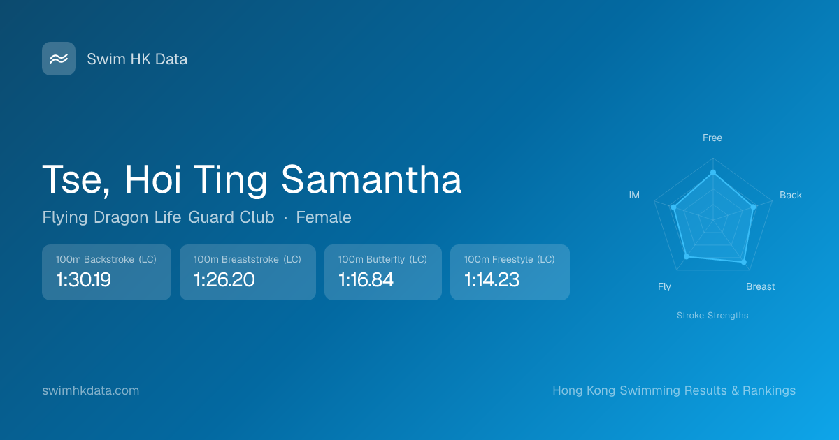 | 50m Butterfly | 33.96 2019-12-19 | 19 | 12 | 2019-12-19 |