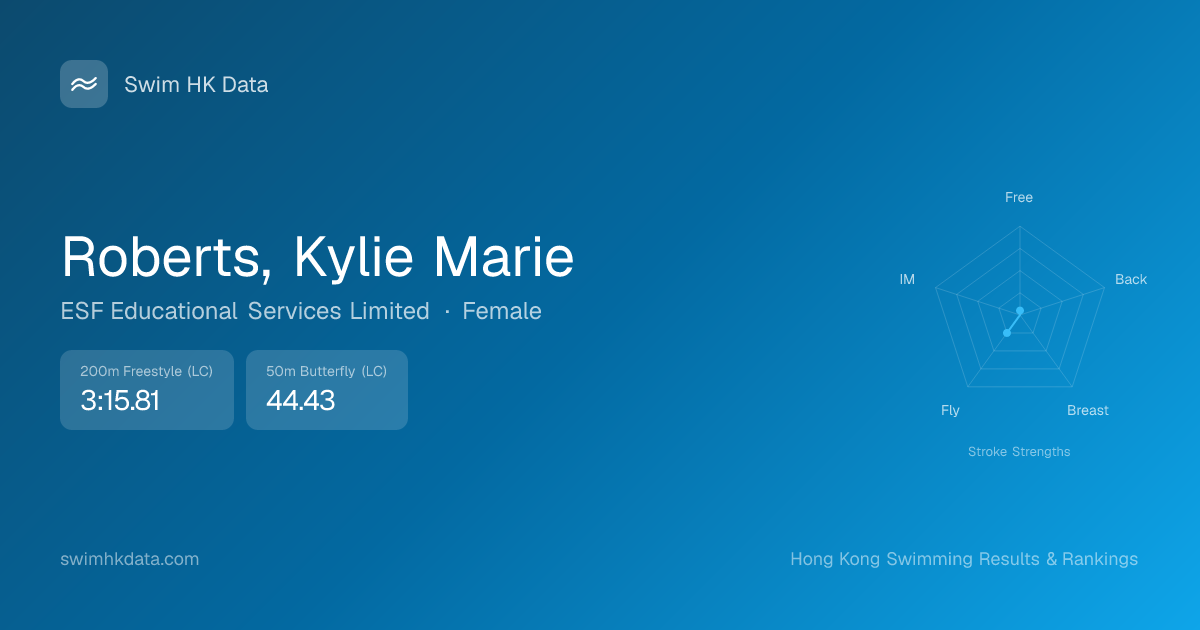 | 50m Butterfly | 44.43 2017-05-29 | 7 | 10 | 2017-05-29 |