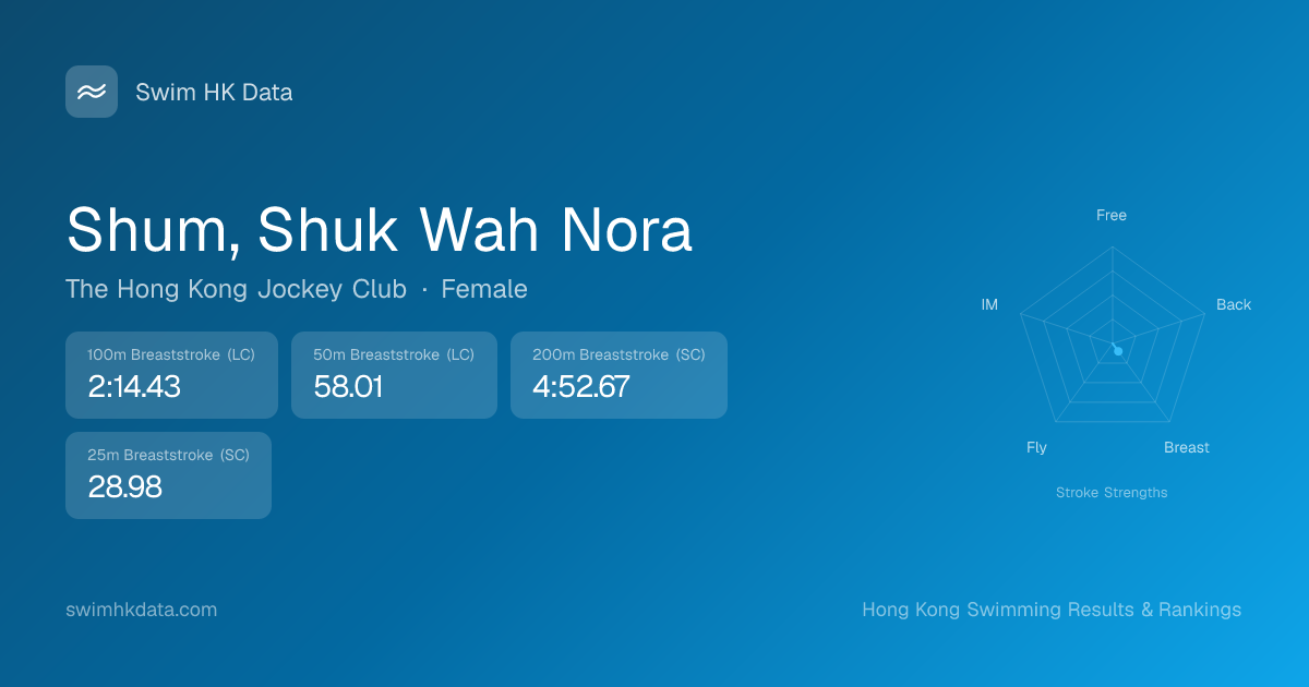 | 50m Breaststroke | 58.01 2018-11-26 | 3 | 66 | 2018-11-26 |