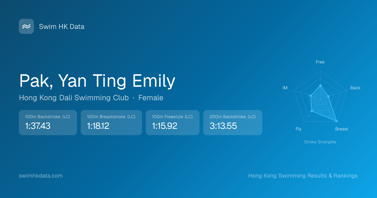 | 50m Backstroke | 43.27 2019-12-24 | 39 | 10 | 2019-12-24 |