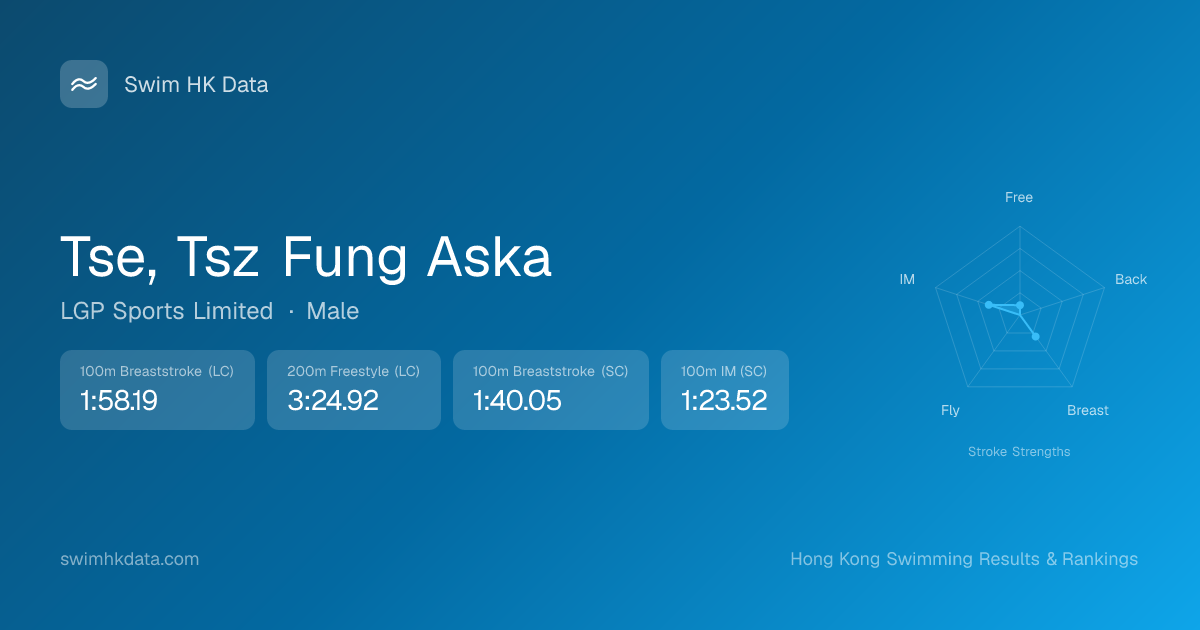 | 100m Individual Medley | 1:23.52 2023-05-12 | 120 | 14 | 2023-05-12 |