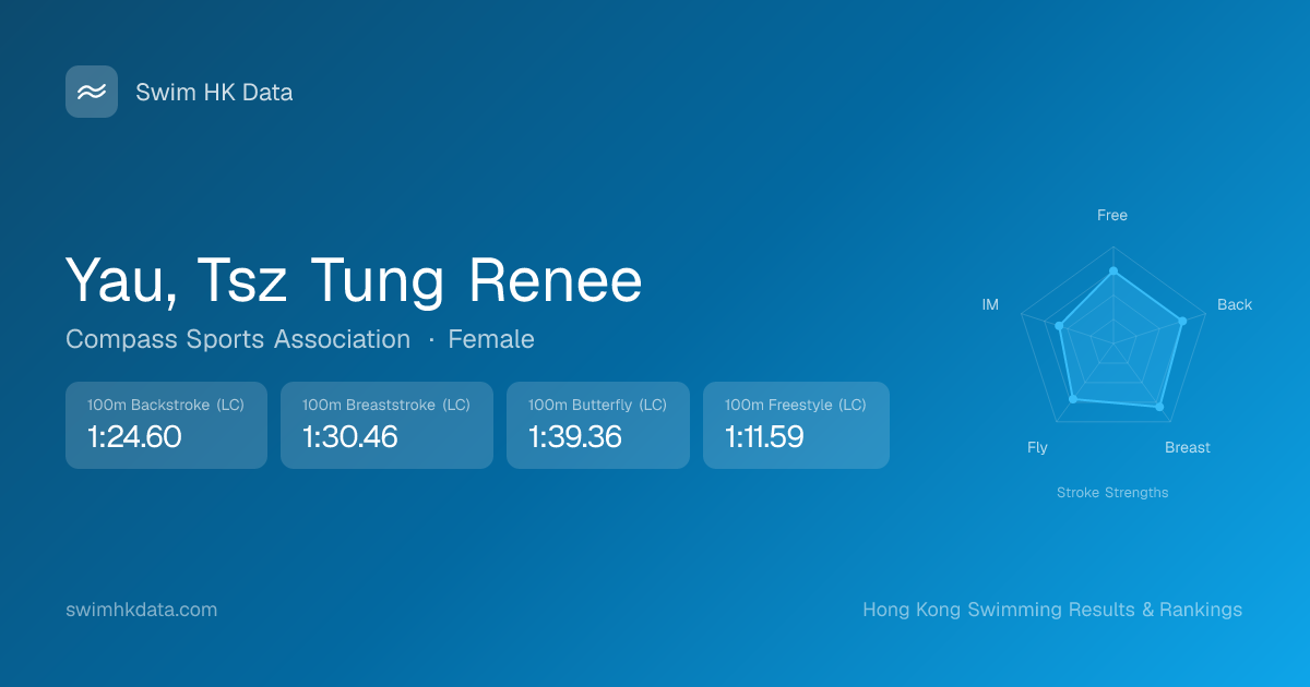 | 50m Butterfly | 35.71 2024-04-29 | 14 | 15 | 2024-04-29 |