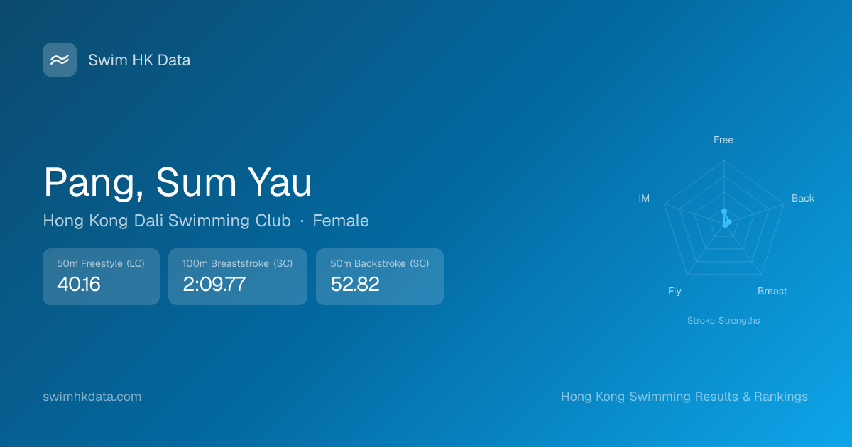 | 50m Backstroke | 52.82 2022-01-04 | 110 | 11 | 2022-01-04 |