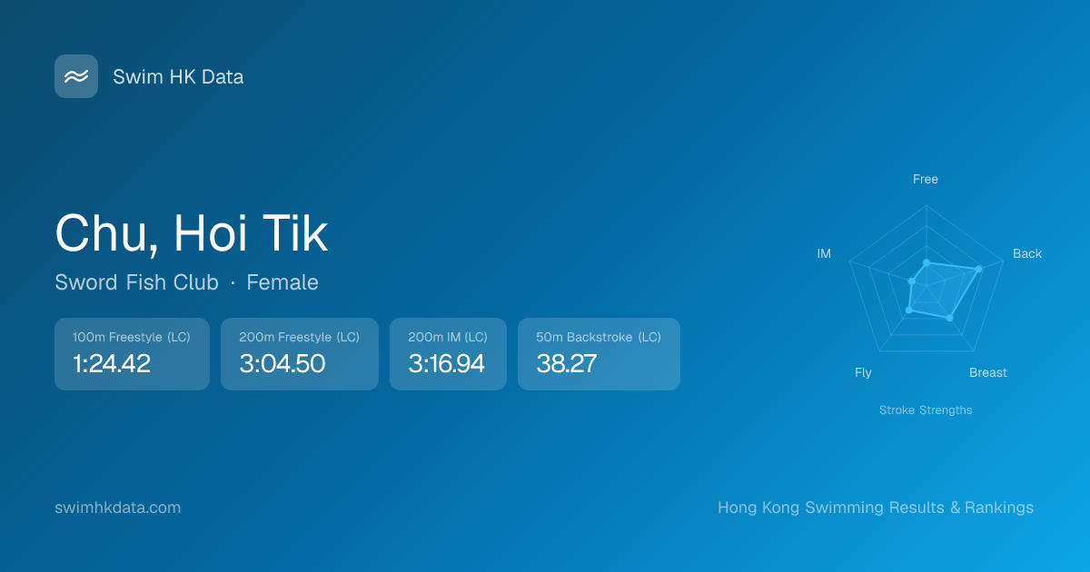 | 50m Butterfly | 39.48 2019-12-19 | 74 | 11 | 2019-12-19 |