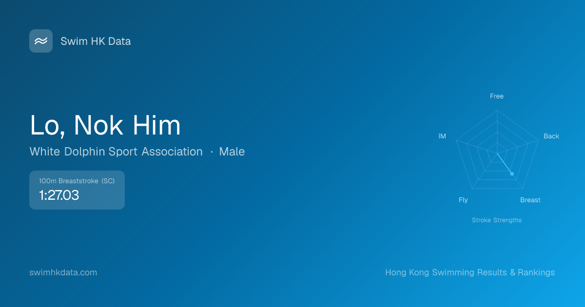 | 100m Breaststroke | 1:27.03 2019-12-24 | 20 | 12 | 2019-12-24 |