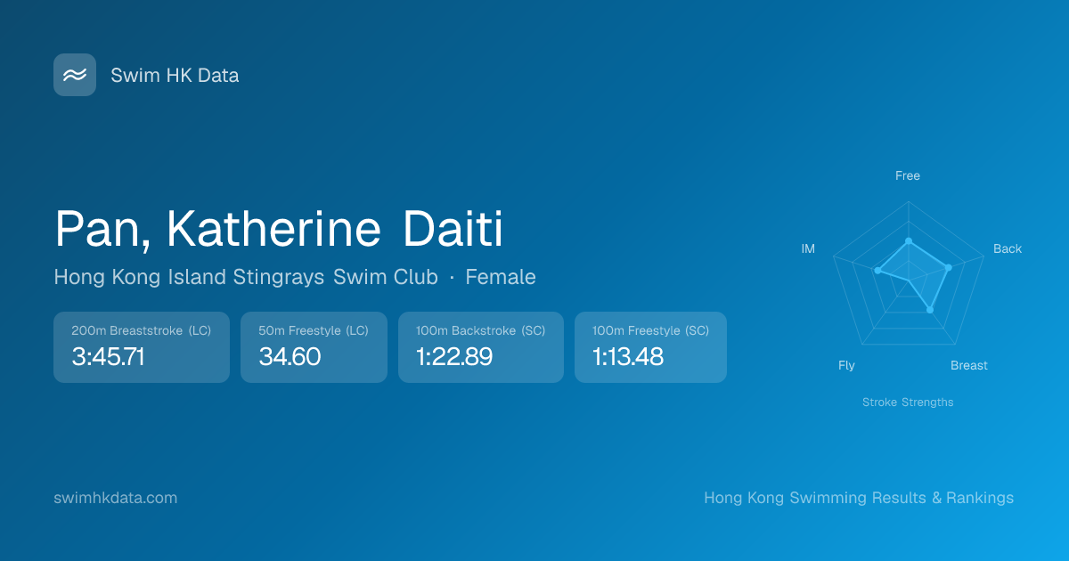 | 50m Freestyle | 34.60 2022-09-05 | 56 | 13 | 2022-09-05 |