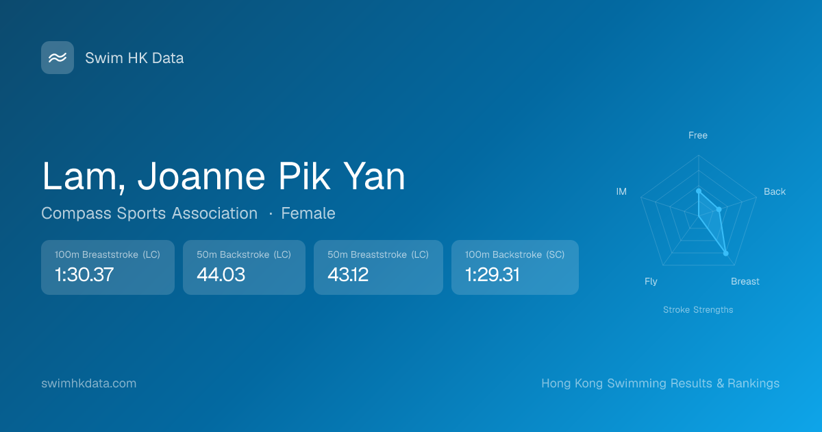 | 100m Breaststroke | 1:30.37 2018-11-05 | 10 | 10 | 2018-11-05 |