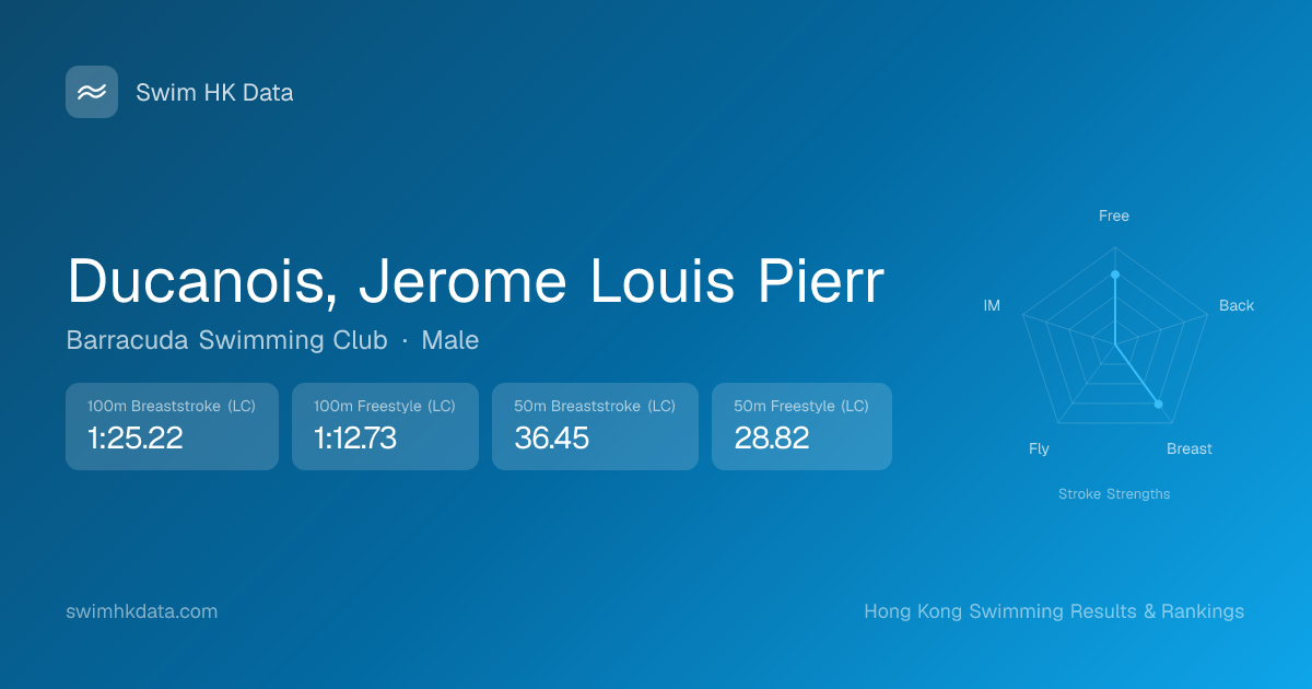 | 100m Freestyle | 1:12.73 2019-03-25 | 2 | 53 | 2019-03-25 |