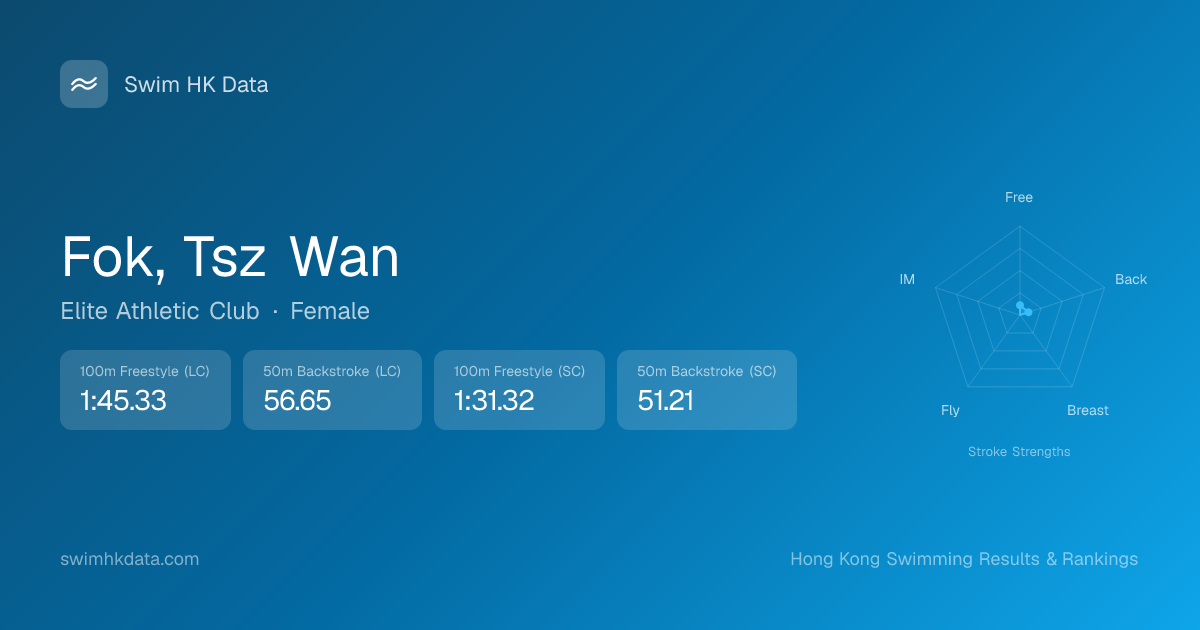 | 50m Backstroke | 51.21 2019-12-24 | 120 | 9 | 2019-12-24 |
