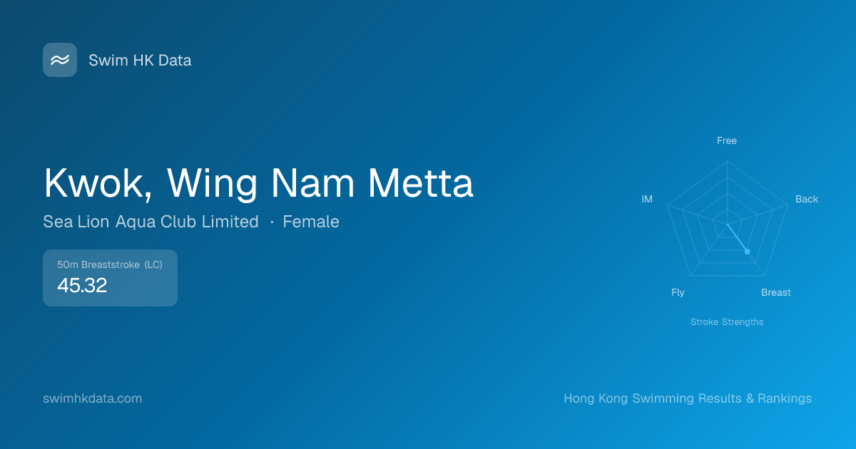 | 50m Breaststroke | 45.32 2018-10-02 | 32 | 11 | 2018-10-02 |