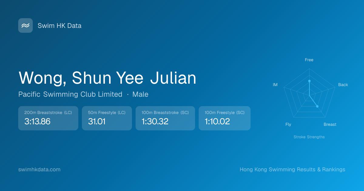 | 50m Freestyle | 31.01 2018-08-06 | 14 | 14 | 2018-08-06 |
