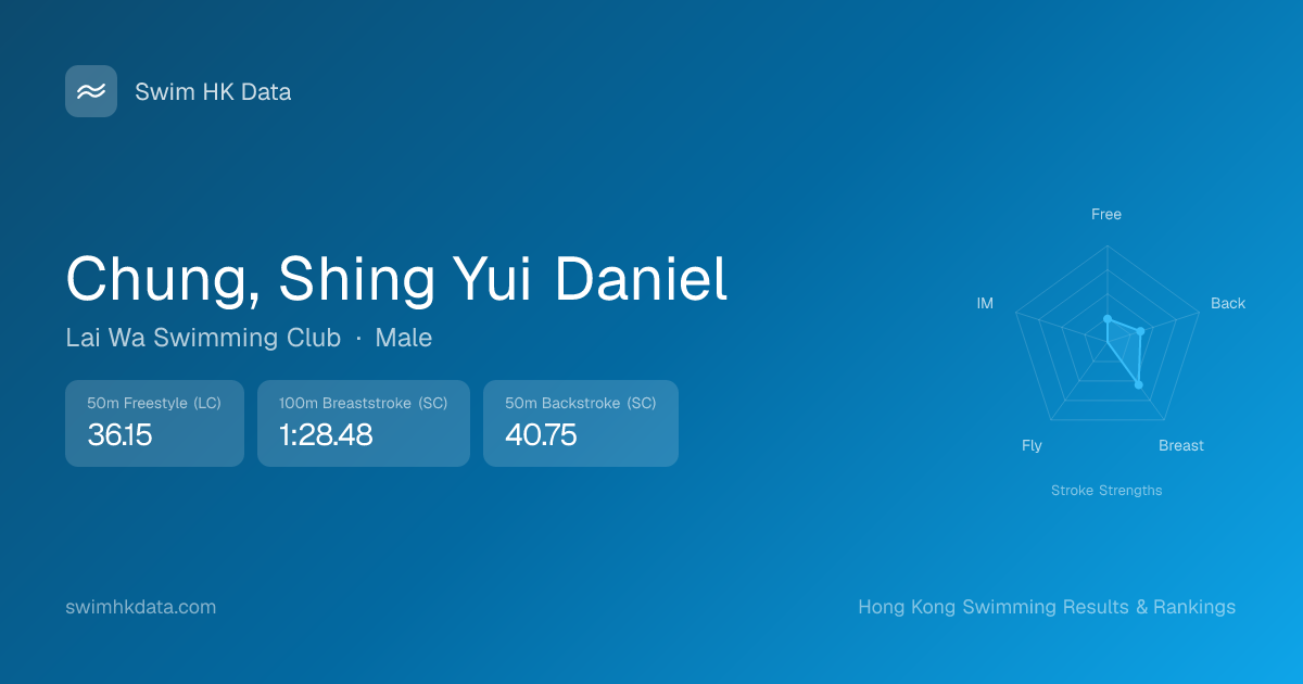 | 50m Freestyle | 36.15 2021-09-27 | 133 | 13 | 2021-09-27 |