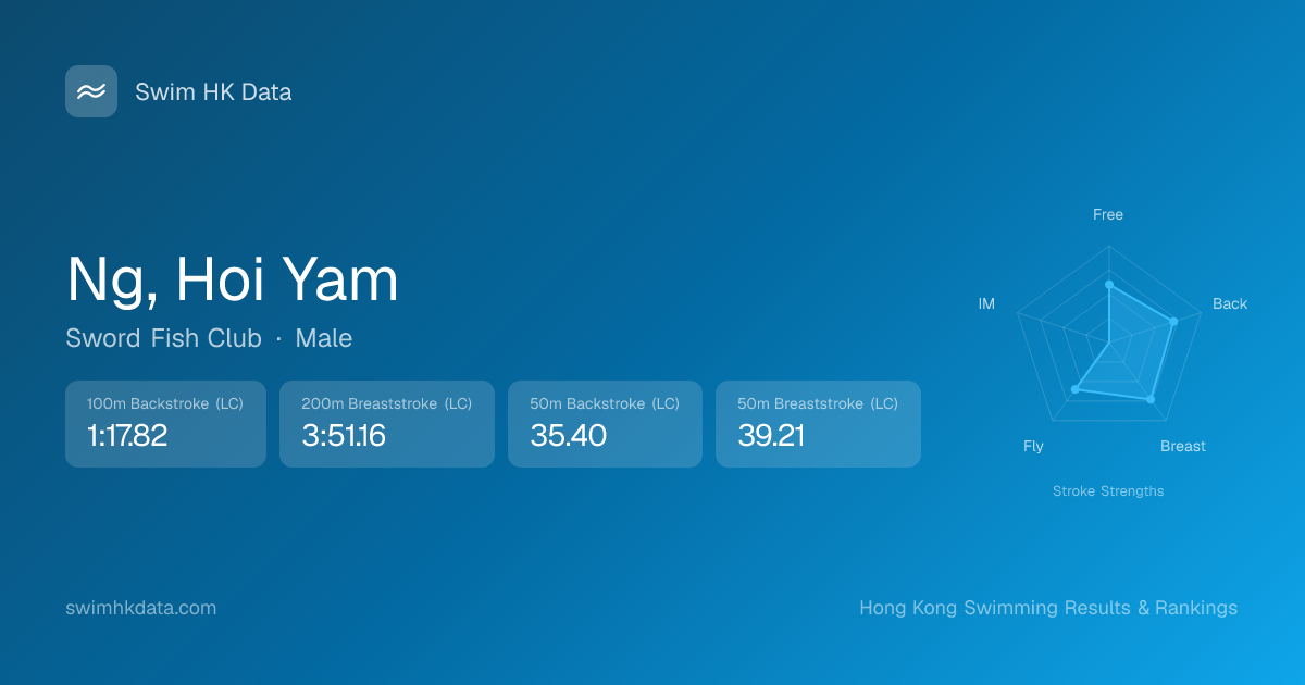 | 50m Breaststroke | 35.93 2023-01-05 | 16 | 15 | 2023-01-05 |