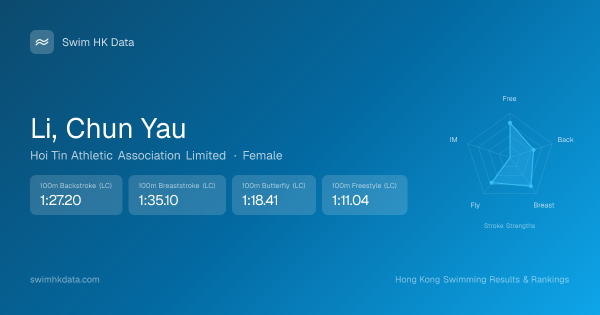 | 50m Butterfly | 34.24 2022-11-22 | 32 | 12 | 2022-11-22 |