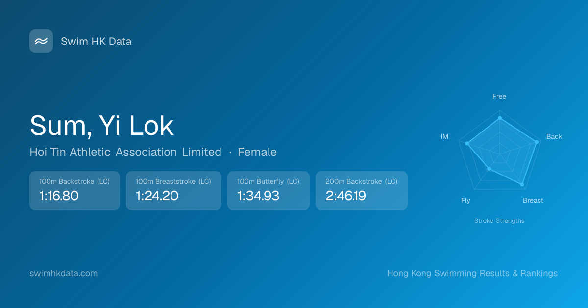 | 50m Backstroke | 34.91 2024-05-17 | 20 | 12 | 2024-05-17 |
