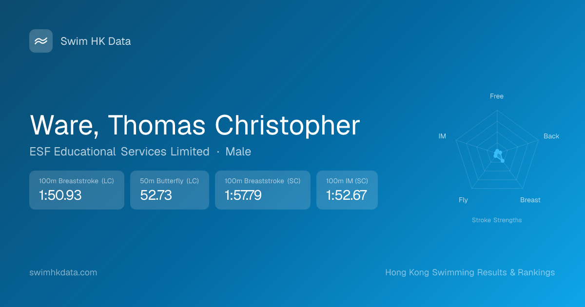 | 50m Butterfly | 52.73 2019-06-01 | 25 | 8 | 2019-06-01 |