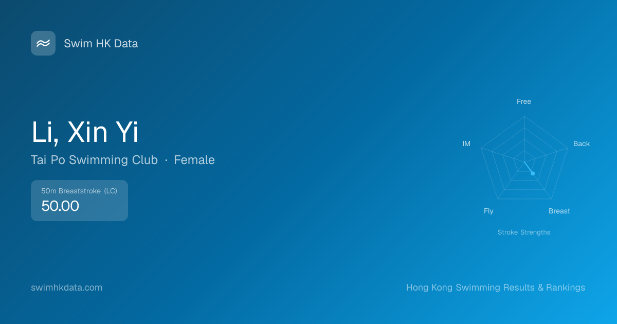 | 50m Breaststroke | 50.00 2018-07-05 | 13 | 9 | 2018-07-05 |