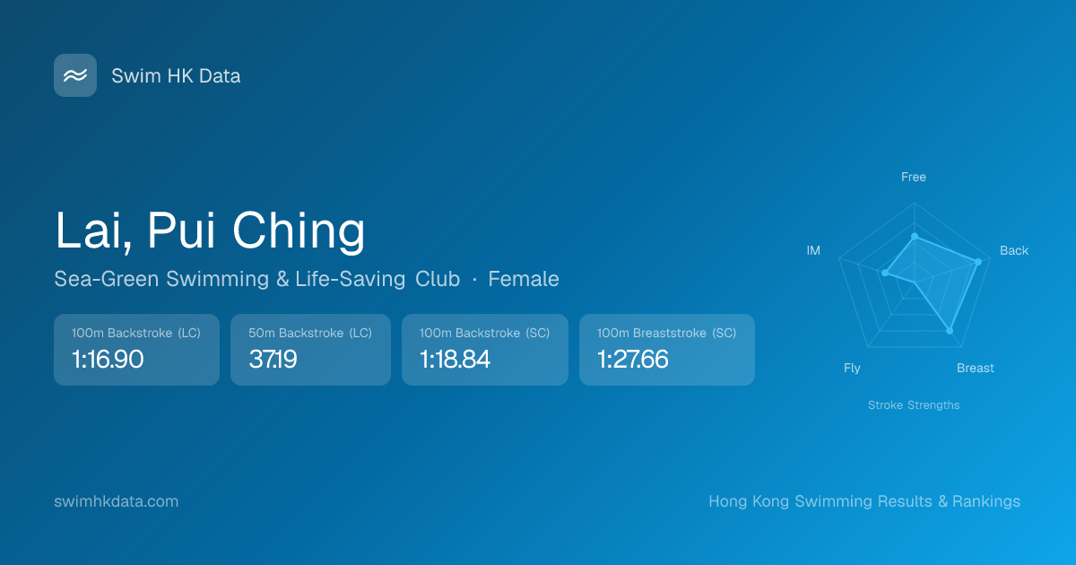| 100m Backstroke | 1:18.84 2019-12-02 | 8 | 10 | 2019-12-02 |