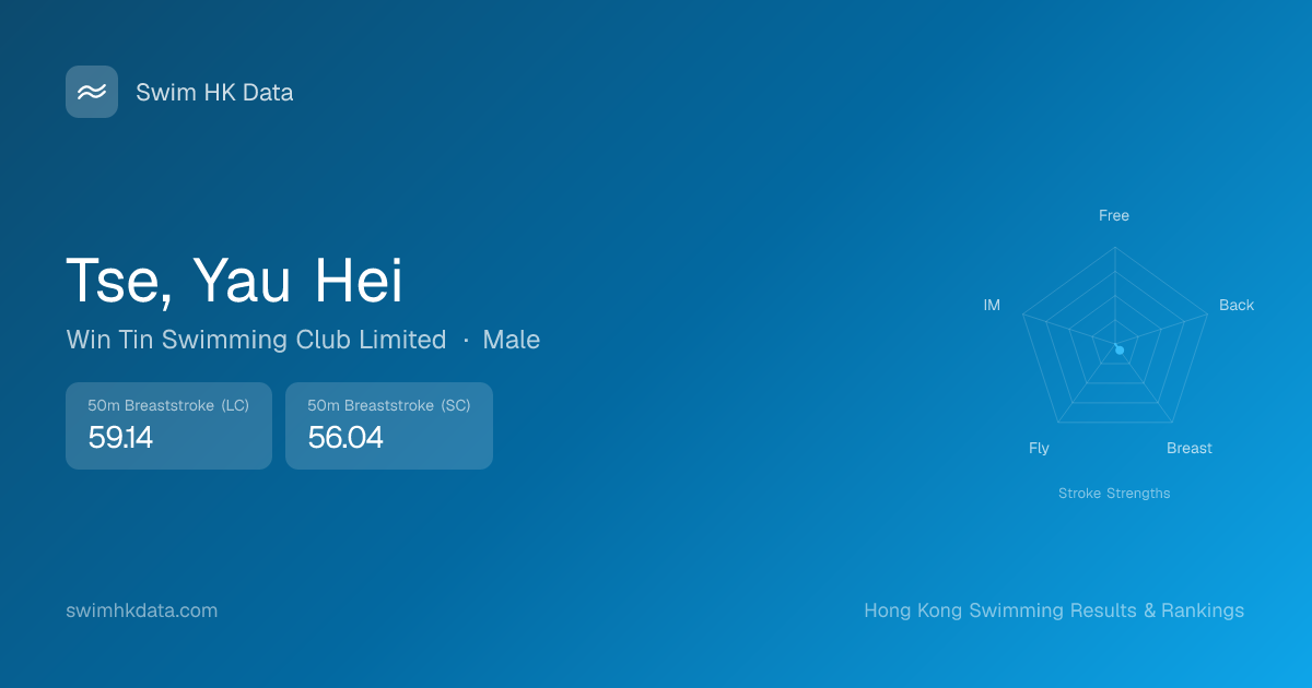 | 50m Breaststroke | 56.04 2019-03-02 | 98 | 9 | 2019-03-02 |