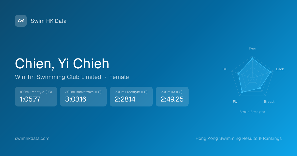 | 400m Freestyle | 5:01.90 2022-09-19 | 22 | 12 | 2022-09-19 |