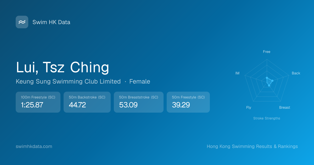 | 50m Backstroke | 44.72 2019-12-24 | 78 | 11 | 2019-12-24 |