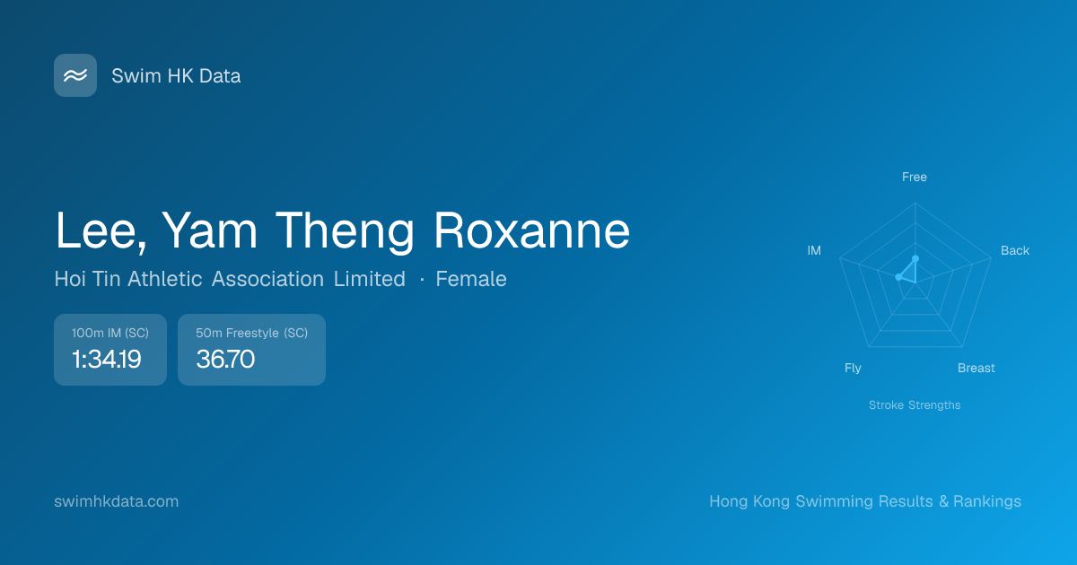 | 50m Freestyle | 36.70 2019-01-26 | 92 | 11 | 2019-01-26 |