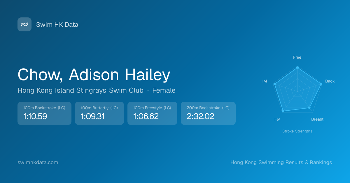 This chart shows how you compare in each stroke based on all your race results. It's just for fun — keep swimming, every practice makes you faster and stronger! 💪