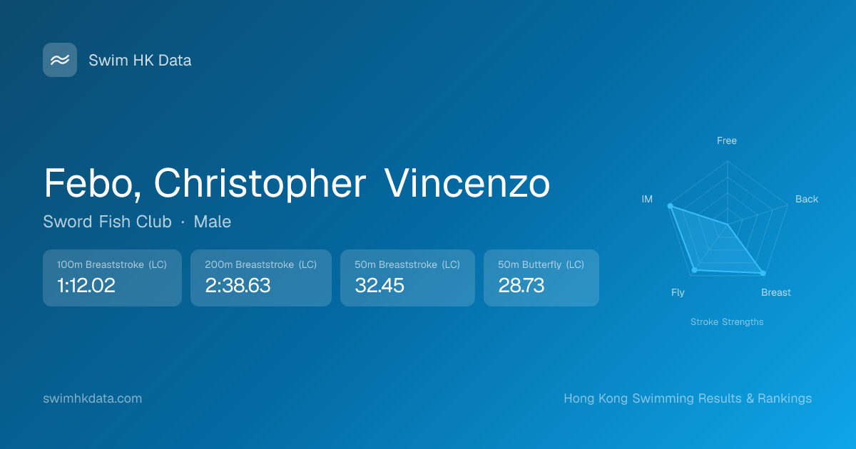 | 50m Breaststroke | 32.45 2023-12-04 | 1 | 30 | 2023-12-04 |