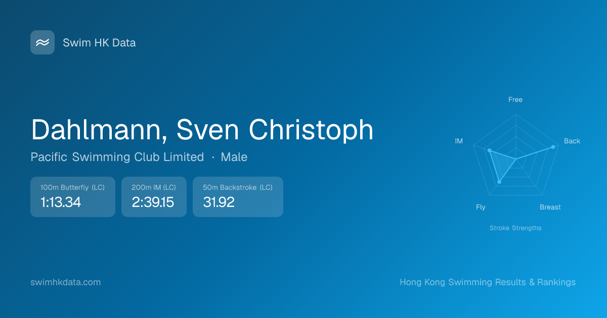 | 50m Backstroke | 31.92 2019-03-25 | 1 | 39 | 2019-03-25 |