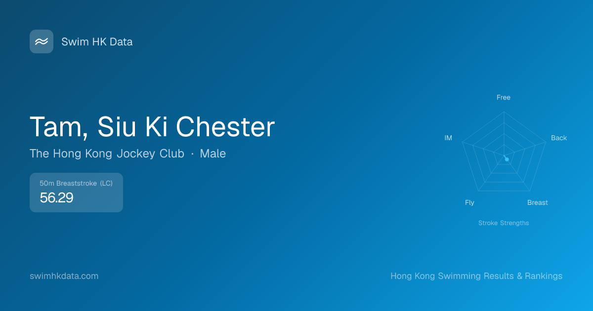 | 50m Breaststroke | 56.29 2019-07-15 | 20 | 8 | 2019-07-15 |