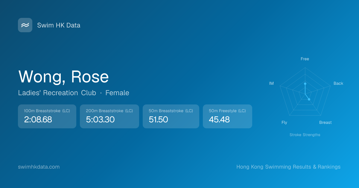 | 50m Breaststroke | 54.56 2026-01-20 | 5 | 56 | 2026-01-20 |