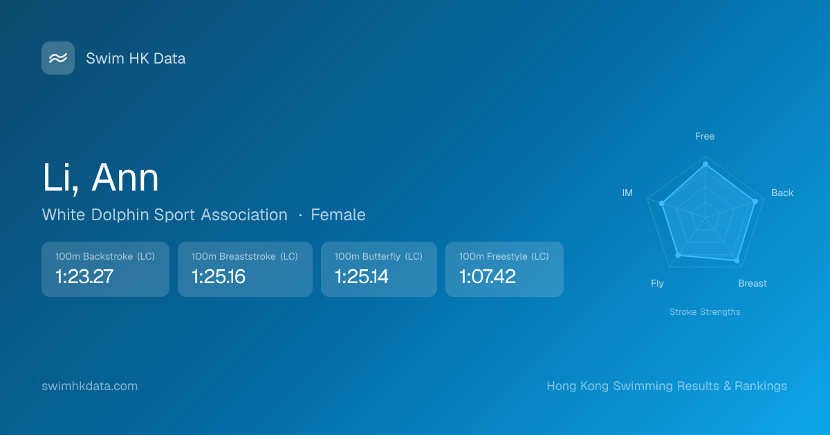 | 100m Butterfly | 1:20.61 2025-01-14 | 22 | 14 | 2025-01-14 |