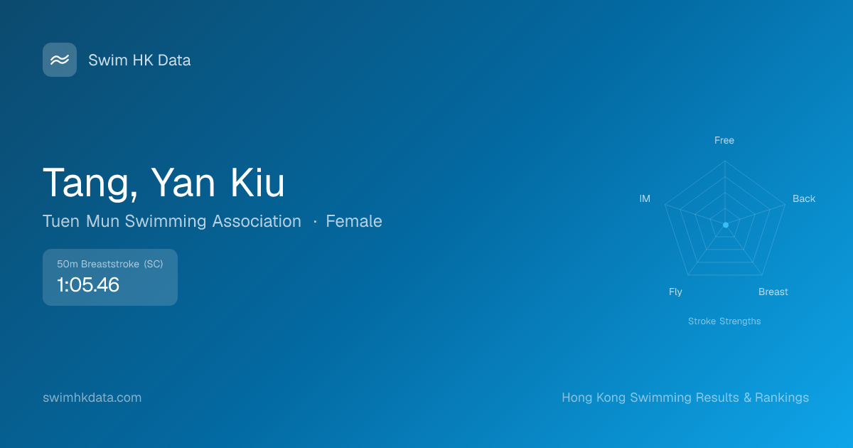 | 50m Breaststroke | 1:05.46 2019-03-02 | 102 | 10 | 2019-03-02 |
