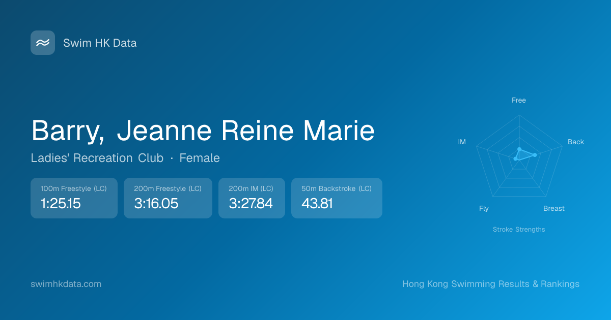 | 50m Backstroke | 43.81 2021-09-15 | 23 | 14 | 2021-09-15 |