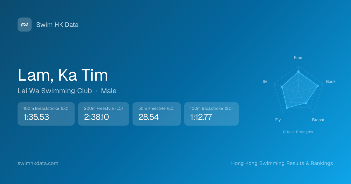 This chart shows how you compare in each stroke based on all your race results. It's just for fun — keep swimming, every practice makes you faster and stronger! 💪
