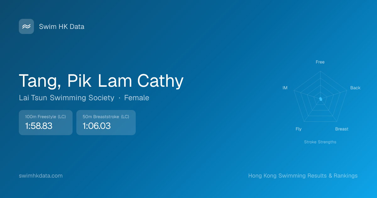 | 100m Freestyle | 1:58.83 2026-02-02 | 5 | 48 | 2026-02-02 |