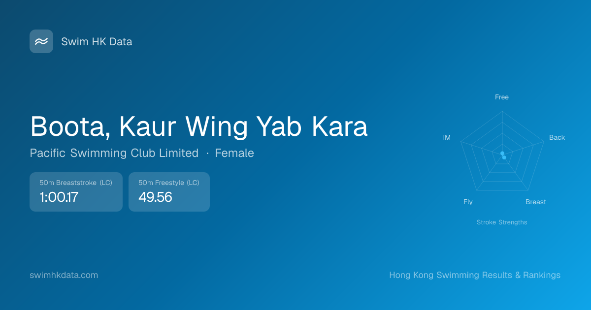 | 50m Freestyle | 49.56 2019-09-30 | 26 | 8 | 2019-09-30 |