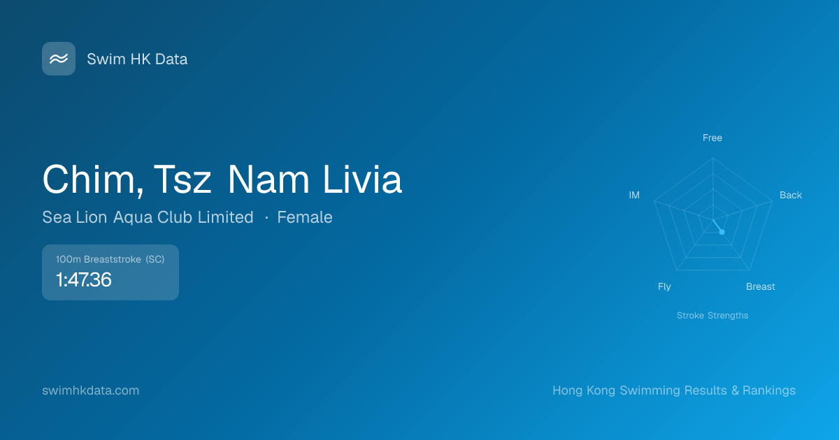 | 100m Breaststroke | 1:47.36 2022-01-04 | 110 | 11 | 2022-01-04 |
