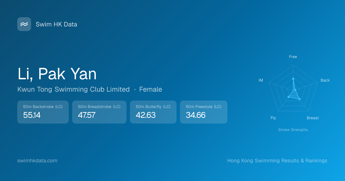 | 50m Butterfly | 43.17 2021-11-15 | 44 | 12 | 2021-11-15 |