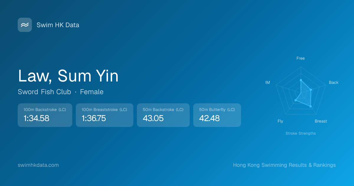 | 50m Butterfly | 42.48 2023-05-02 | 22 | 12 | 2023-05-02 |