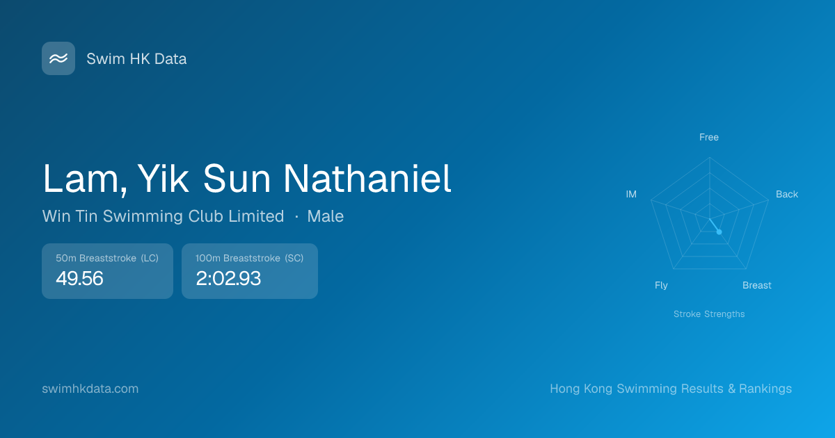 | 50m Breaststroke | 49.56 2022-01-07 | 26 | 10 | 2022-01-07 |