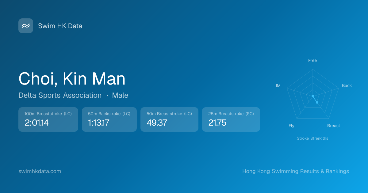 | 50m Breaststroke | 47.89 2019-09-24 | 5 | 50 | 2019-09-24 |