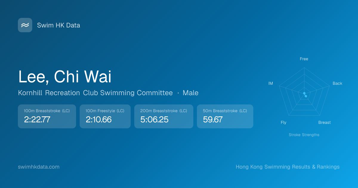 | 100m Breaststroke | 2:22.77 2023-12-04 | 6 | 64 | 2023-12-04 |