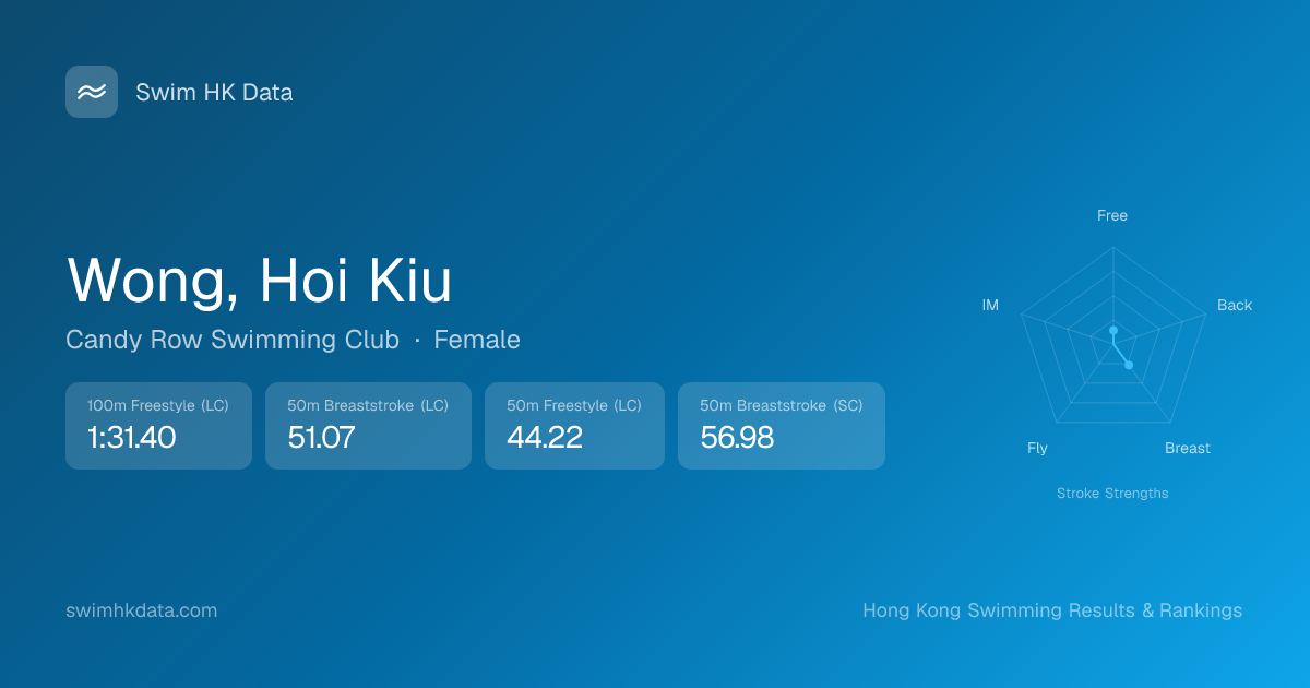 | 50m Breaststroke | 51.07 2024-06-24 | 33 | 12 | 2024-06-24 |