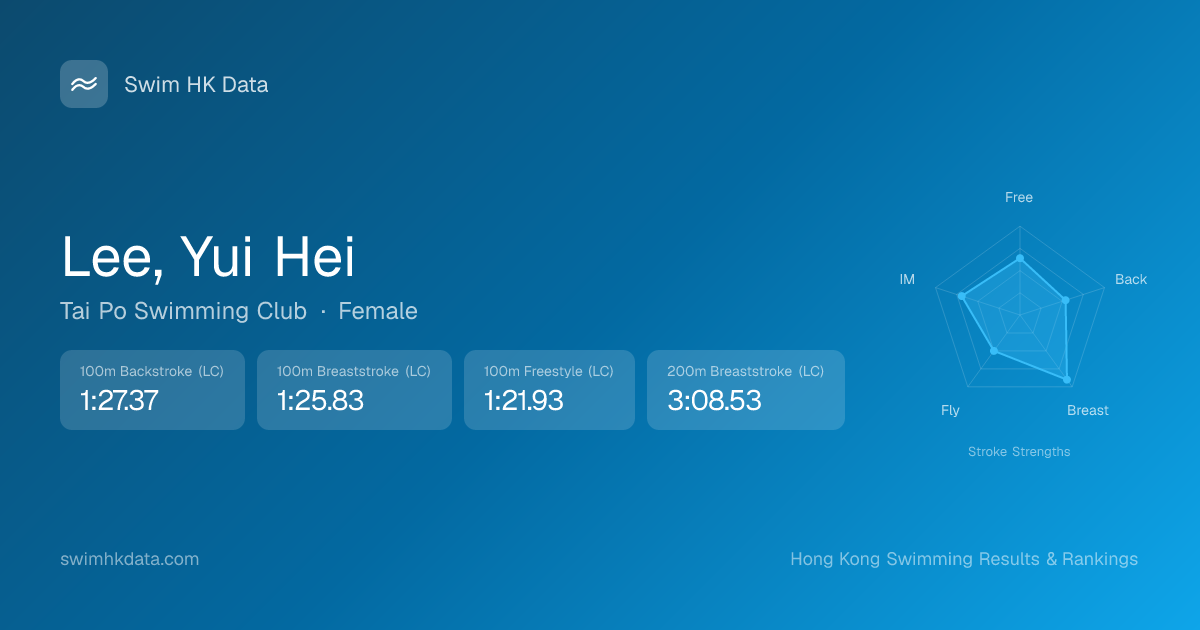| 100m Breaststroke | 1:35.60 2022-01-04 | 20 | 10 | 2022-01-04 |