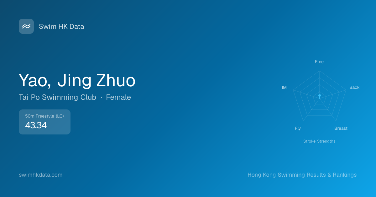 | 50m Freestyle | 43.34 2019-07-30 | 57 | 10 | 2019-07-30 |