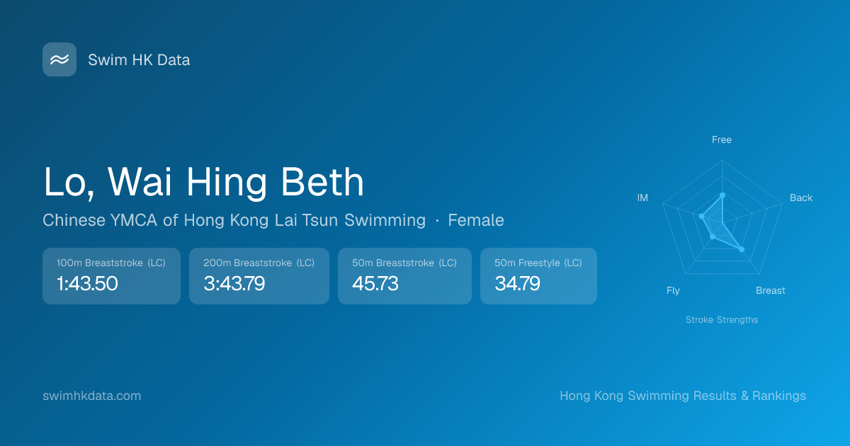 | 100m Breaststroke | 1:43.50 2025-04-29 | 10 | 16 | 2025-04-29 |