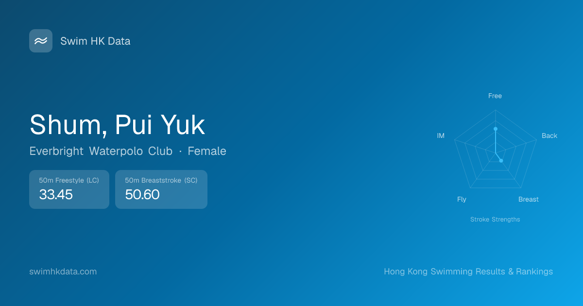| 50m Freestyle | 33.45 2022-11-17 | 14 | 14 | 2022-11-17 |