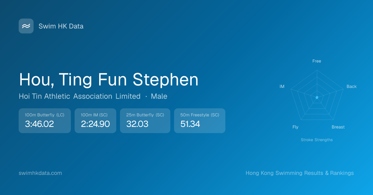 | 100m Butterfly | 3:46.02 2023-03-27 | 4 | 69 | 2023-03-27 |