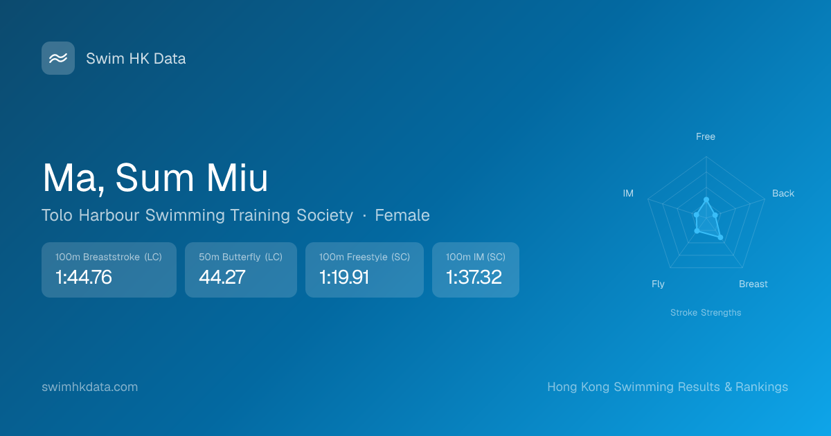 | 50m Butterfly | 44.27 2025-05-12 | 9 | 15 | 2025-05-12 |
